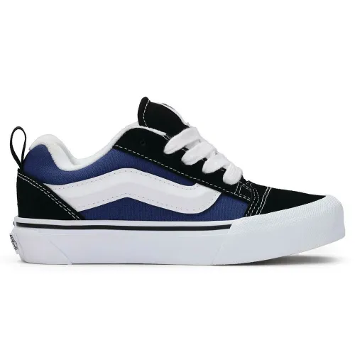 Volte à era ousada da cultura skate dos anos 90 com os tênis VANS Knu Skool, reimaginados para a próxima geração de criadores de tendências. Isto não é apenas um tênis; é uma declaração. Inspirado no VANS Old Skool original, o Knu Skool leva tudo para o próximo nível com um design oversized e puffy que oferece estilo marcante e conforto incomparável para crianças ativas. É a escolha perfeita para crianças que querem expressar sua personalidade com um sapato tão durável quanto estiloso.