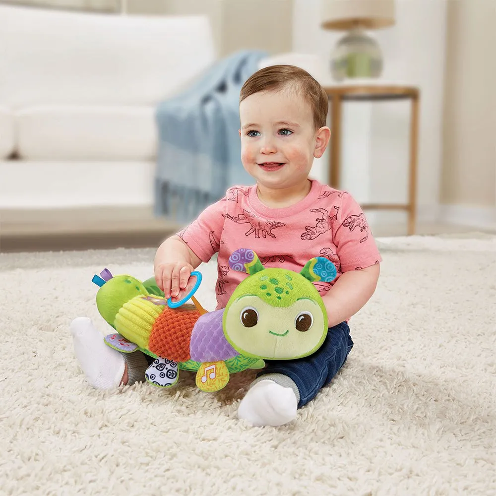 - Adorável lagarta de pelúcia interativa com diferentes cores e texturas.