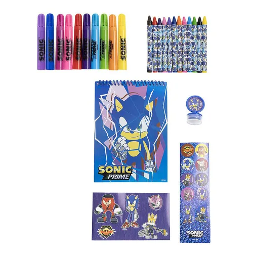 Dyk in i en värld av fantasi med en komplett samling högkvalitativa konstmaterial, allt prydligt organiserat i en hållbar och stilren portfölj. Själva portföljen har dynamiska konstverk av den ikoniska blå hjälten, Sonic, vilket gör den till en spännande accessoar för varje ung fan att bära. Öppna de säkra låsen för att avslöja en skattkista av kreativa verktyg. Denna allt-i-ett-lösning inkluderar ett briljant spektrum av färgpennor för intrikata detaljer, en regnbåge av djärva tuschpennor för effektfulla designer, och släta kritor perfekta för att fylla stora ytor med fyllig färg. Setet är noggrant sammansatt för att erbjuda en mängd olika medier, vilket gör att barn kan experimentera och utveckla sina konstnärliga färdigheter.