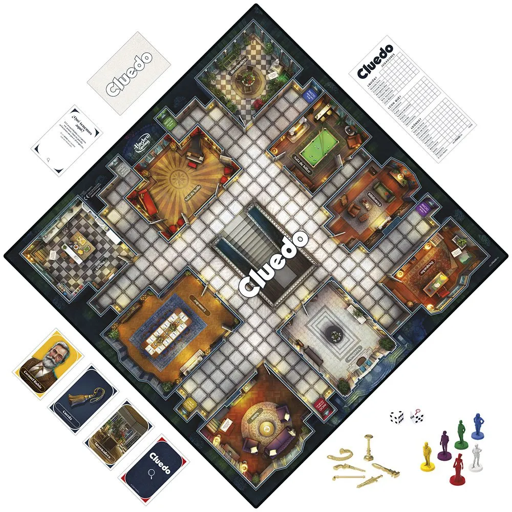 Det är ett roligt spel för familjer, vänner, mysterieälskare och barn från 8 år och uppåt! Cluedo och alla relaterade karaktärer är varumärken som tillhör Hasbro.
