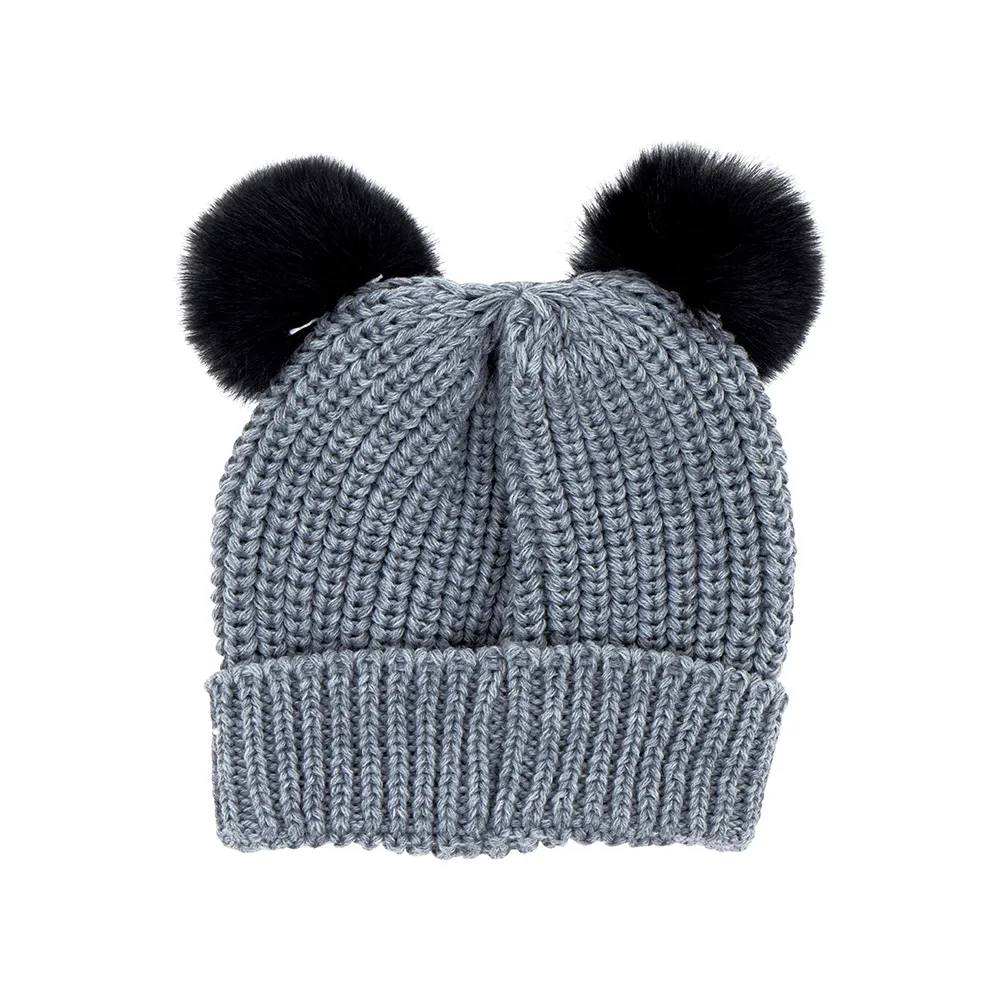 Med broderad applikation och 2 pälsbollar.