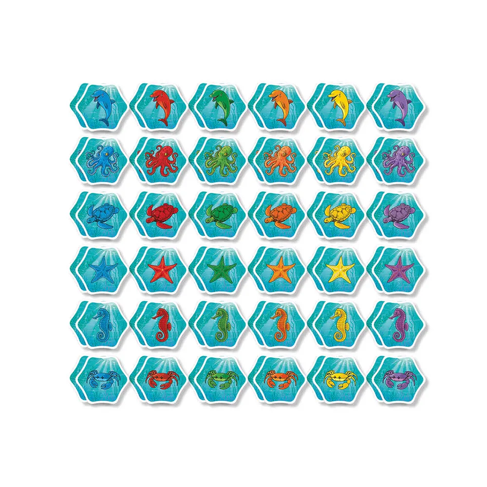 Försök att hitta en giltig matchning mellan 1 av de 6 marina djuren och deras korrekta färg.