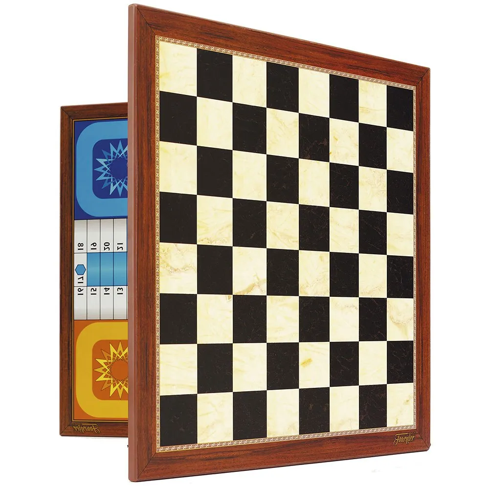 Dubbelsidig 40x40 cm spelplan med Fia med knuff och schackspel.