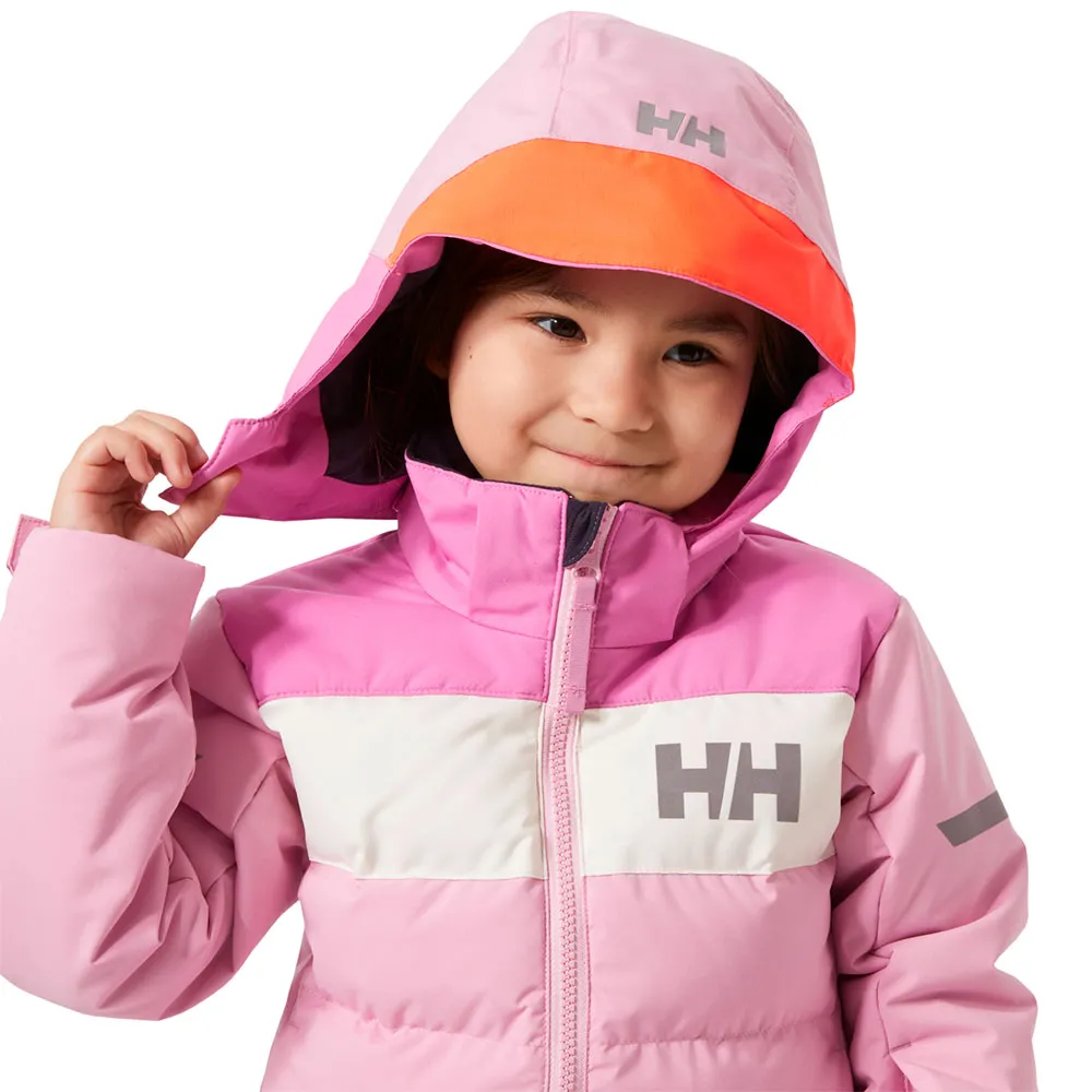 Denna isolerade skidjacka håller barn bekväma och skyddade under en rolig dag i backen. Jackans utsida är vattenavvisande, och vi har använt PrimaLoft® 170g isolering i en mysig baffelväv för att hålla värmen inne. Extra skidfunktioner inkluderar en avtagbar neongul huva, ett mjukt hakskydd, en liftkortsficka och ett vattentätt snölås för att göra dina dagar i snön ännu bättre.