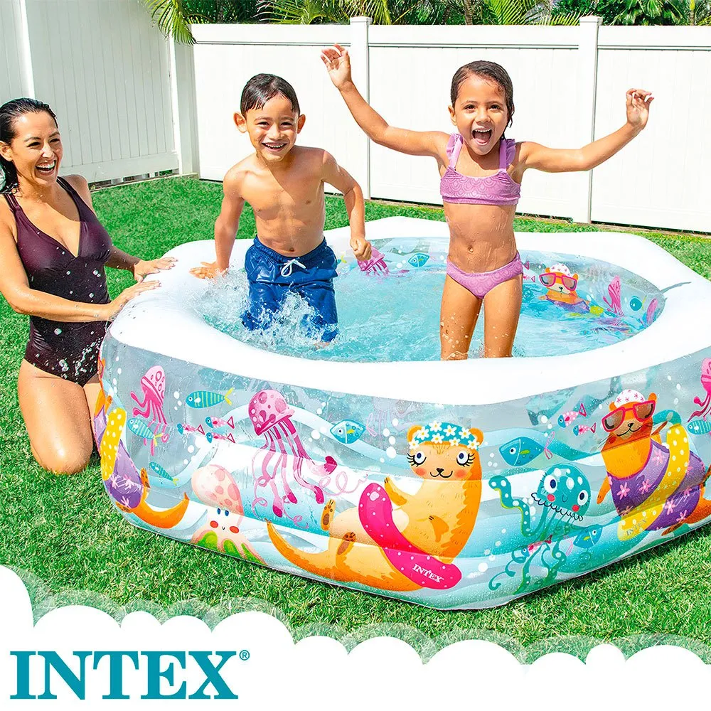 Intex uppblåsbara Ocean Reef Pool, mätningar när uppblåst: 191x178x61 cm.