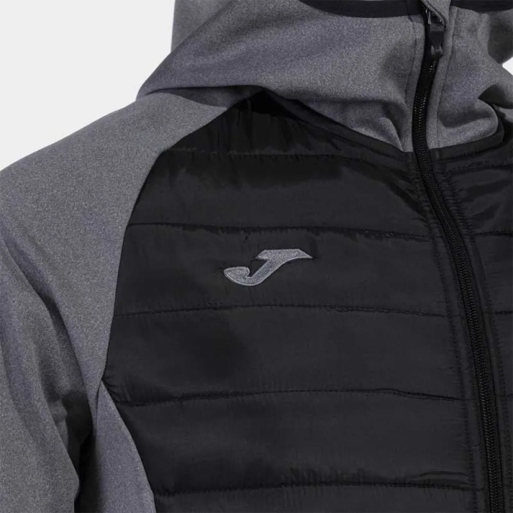 Softshelljacka. Denna bekväma och lätta jacka är lämplig för att hålla värmen under träning. Du kan använda den för alla aktiviteter och njuta av dess utmärkta värmeskydd och rörelsefrihet. Den har en fullständig dragkedja, ett hakskydd för att förhindra friktion och en huva. Raglanärmarna bidrar till rörligheten. Med elastiska avslut för en perfekt passform och två framfickor med osynlig dragkedja för att säkert förvara personliga tillhörigheter. Tillverkad av lätt och slitstarkt material, vilket förlänger dess hållbarhet. Broderat Joma-logotyp.
