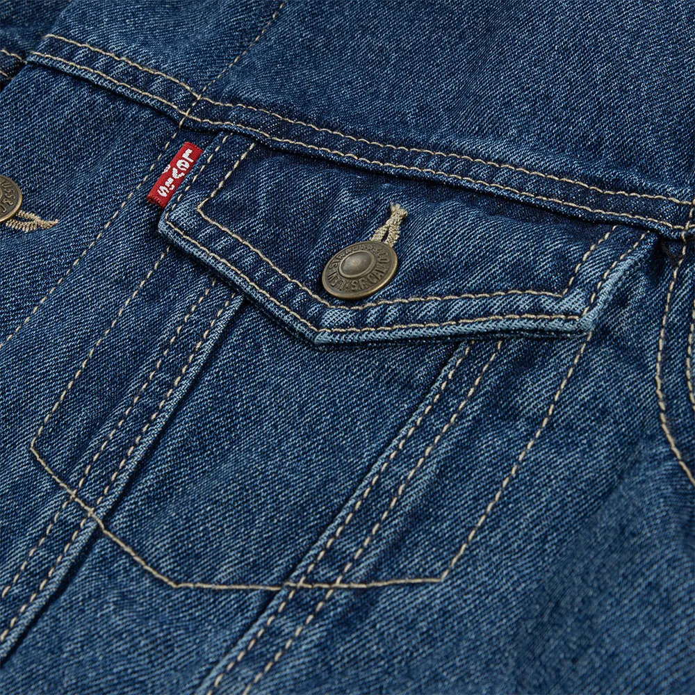 Upptäck den perfekta blandningen av tidlös stil och viktig värme med Levi´s® Kids Trucker Jacket. Denna ikoniska silhuett har återskapats för kalla dagar, med ett helt quiltat innerfoder för överlägset termiskt skydd och en mjuk manchesterkrage för extra komfort. Byggd för den moderna unga upptäcktsresanden, dess slitstarka konstruktion tål aktiv lek, medan den klassiska designen med fyra fickor ger en praktisk, urban stil. Det är den ultimata följeslagaren för kallt väder, som håller honom varm och snygg från skolgården till helgäventyren
