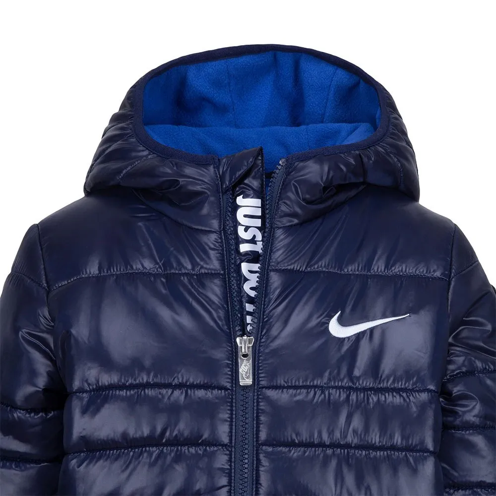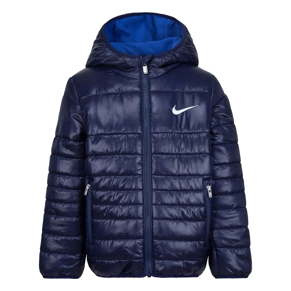 NIKE KIDS Mid Weight Puffer Jacket i Midnight Navy är ett stilfullt och praktiskt val för barnkläder. Denna jacka är tillverkad av det välkända sportmärket Nike och är designad för att hålla barn varma och bekväma under kyliga väderförhållanden.