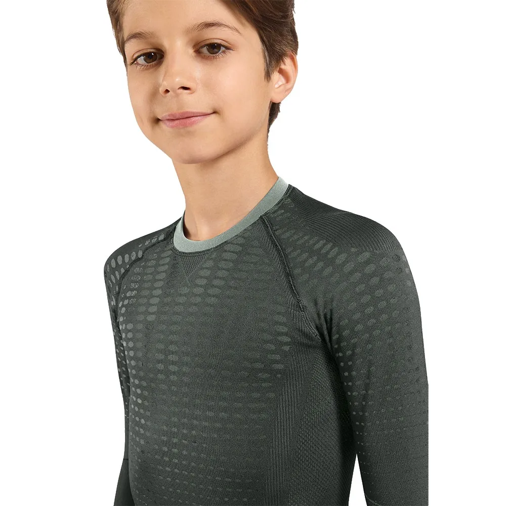 ODLO:s Performance Warm Kids? långärmade underställströja kombinerar komforten av sömlös stickningsteknik med förbättrad personlig klimatanpassning för att hålla barn varma och aktiva längre, även under de kallaste äventyren.
