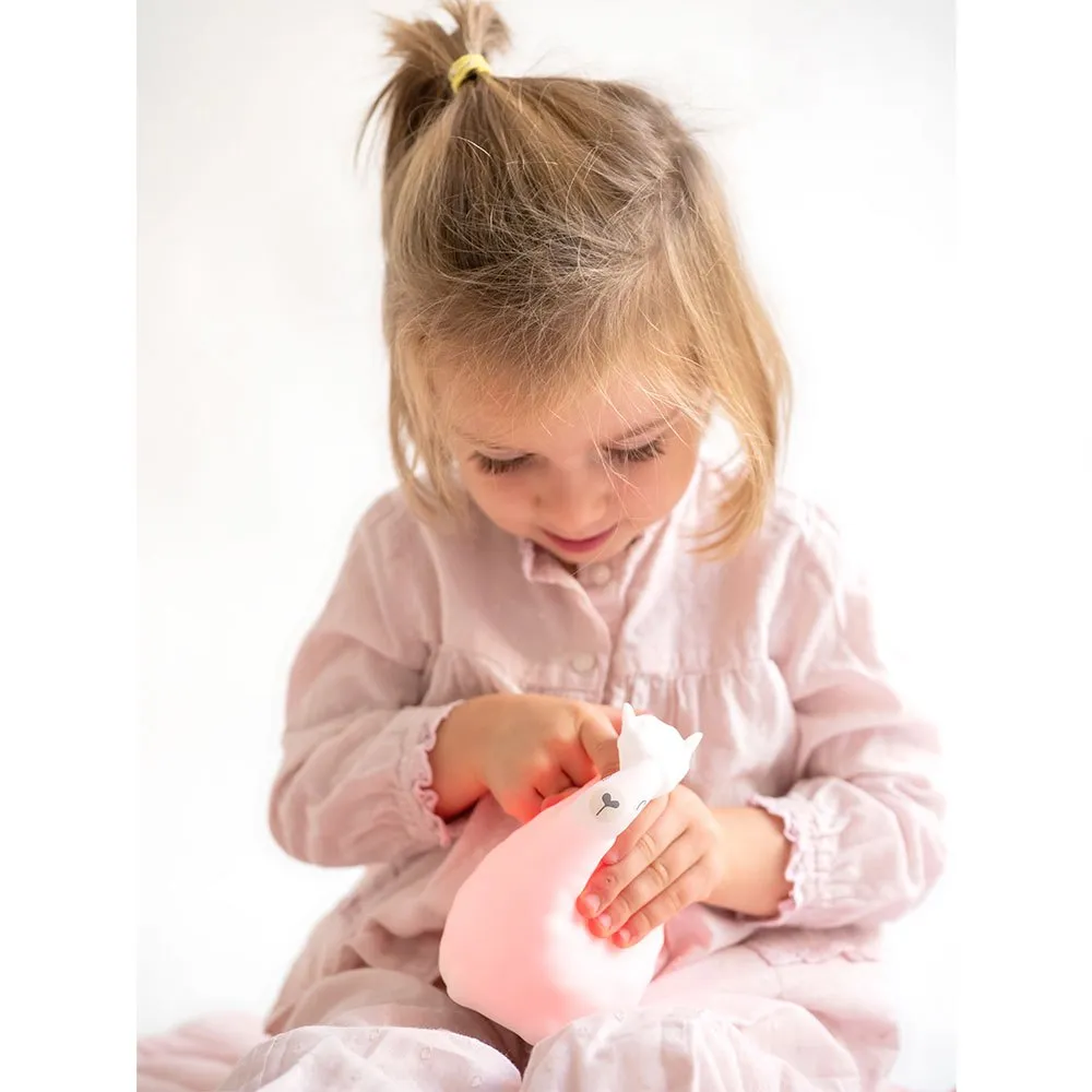 Saros "Wild Alpaca" nattlampa är mjuk, avslappnande och kommer att få ditt barn att känna sig trygg utan att störa hans söta drömmar.