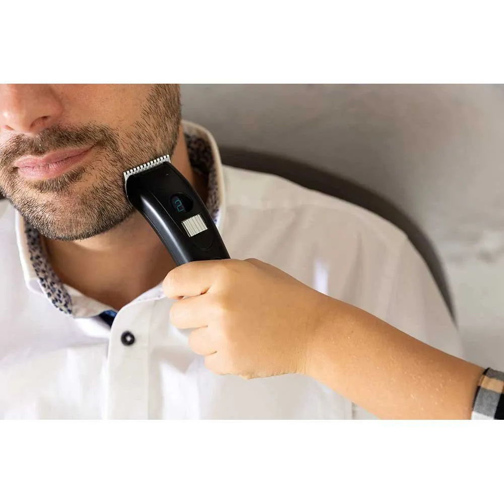 Liten flicka eller liten pojke, frisörbältet är lämpligt för barn från 3 år och uppåt. Tack vare de 10 tillbehören som ingår kan din lilla ta hand om ditt skägg och ditt hår!