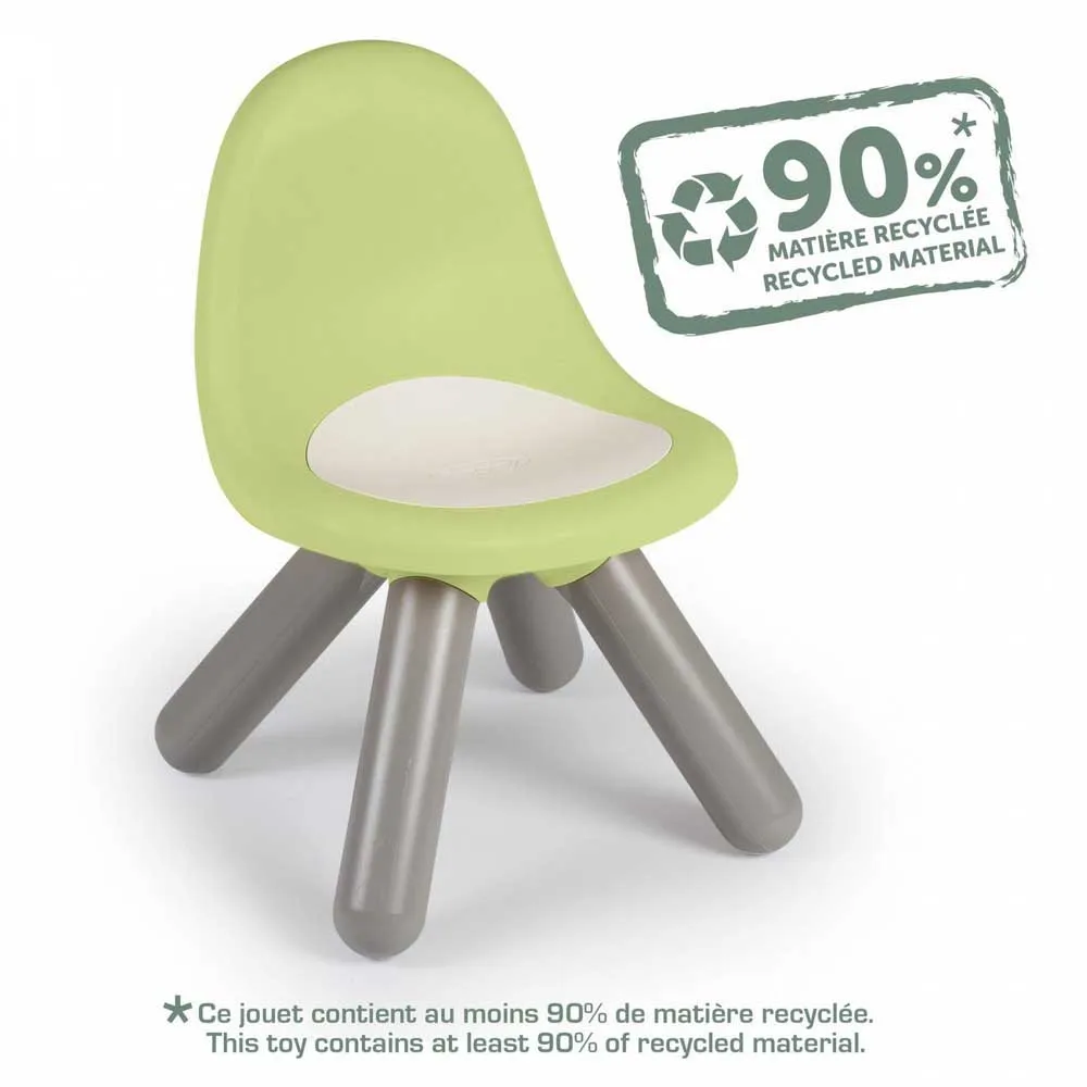 Den robusta Smoby Life barnstolen från Kid-möbellinjen ger modern färgdesign till barnrummet, trädgården eller balkongen. En superstilren designad barnstol tillverkad av minst 90 % återvunnen plast. Den speciella tillverkningstekniken gör stolsbenen särskilt stabila, och den ergonomiskt formade sitsen är mycket bekväm för de små att sitta på. Tack vare den UV-stabila plasten är barnstolen särskilt motståndskraftig mot väderpåverkan och för tidig färgblekning, vilket gör den lika lämplig för användning i trädgården, inuti en lekstuga eller i barnrummet. Barnstolen, med sin mjuka färgsättning, är också ett blickfång i vardagsrummet. Det matchande barnbordet och andra möbler finns också i Kid-produktlinjen.