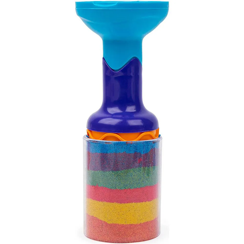Skapa regnbågsöverraskningar om och om igen med din magiska färgade sand! Blanda regnbågens färger: