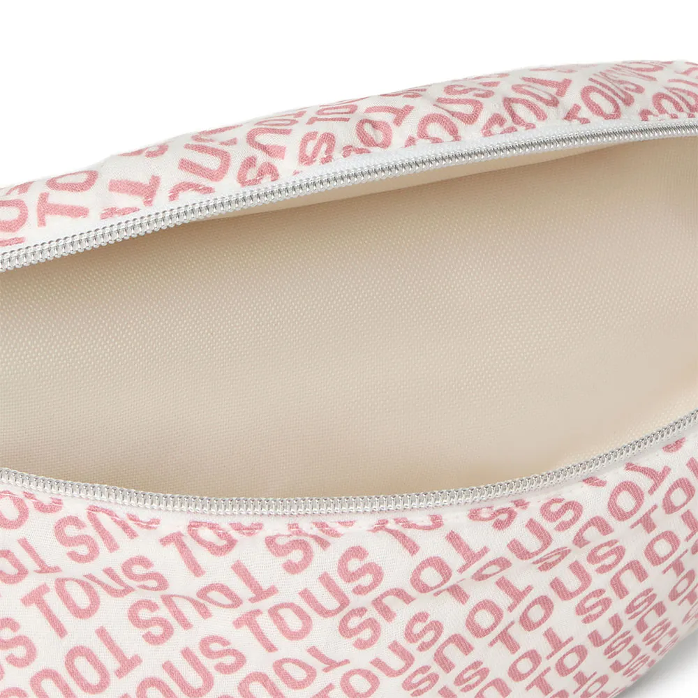 TOUS Baby skötväska i mjuk muslinbomull tryckt med TOUS-logotyp och interiör i tekniskt tyg.