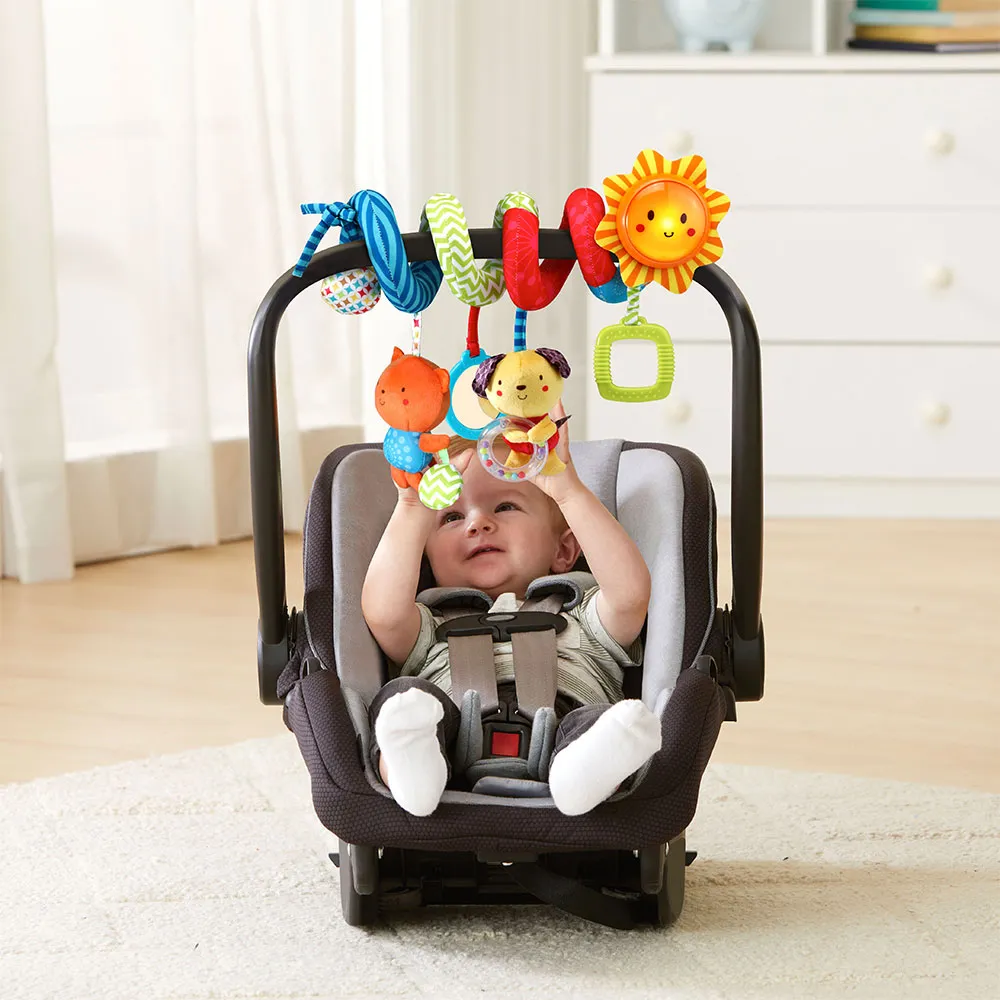 Surra det runt stänget på en babyskydd eller en barnvagn för att hjälpa ditt barn att stanna underhållen på resan.