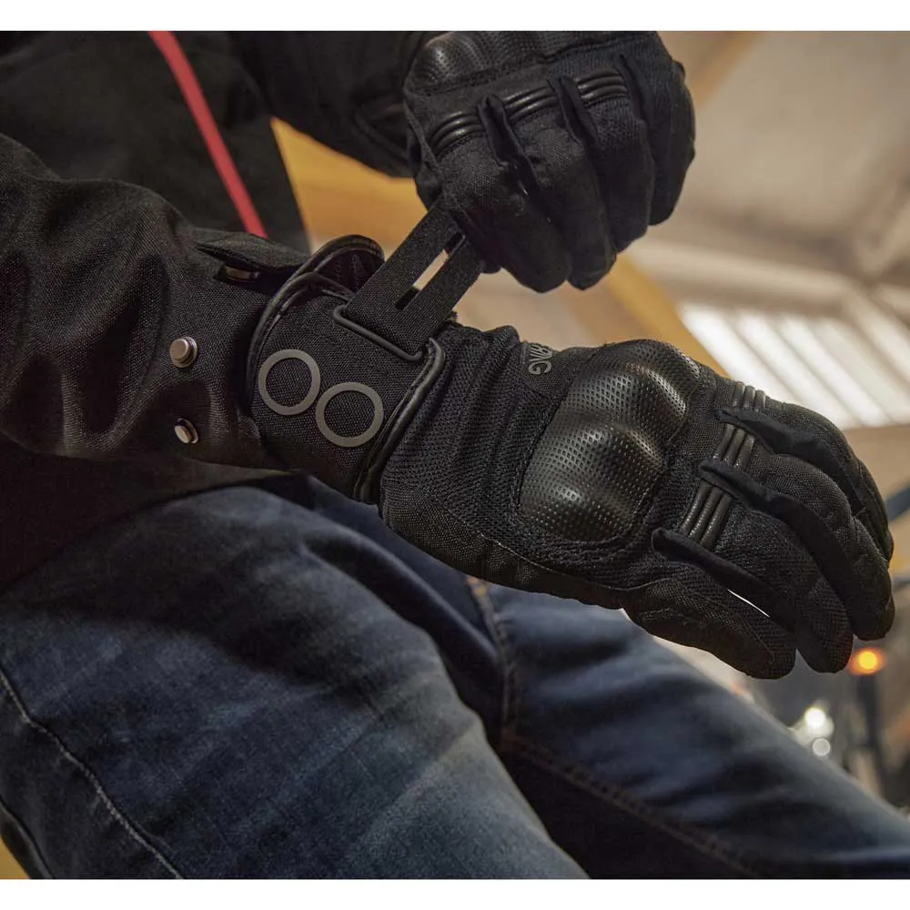 - Håndledsspændingssystemet giver en tilpasset pasform til enhver motorcyklist. Pasformen sikrer en sikker forbindelse mellem jakken og handsken, hvilket forbedrer den samlede beskyttelse. Det forhindrer også indtrængen af eksterne elementer, hvilket sikrer en behagelig køreoplevelse.