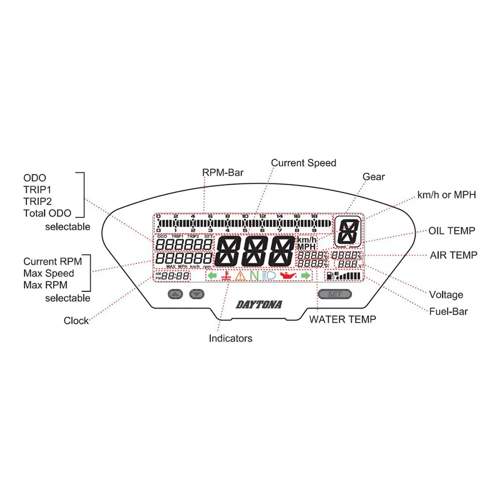Produktbeskrivelse af Daytona DEVA01 hastighedsmåler