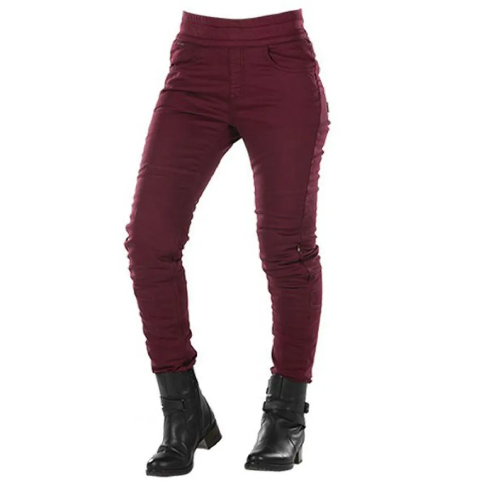 Nyt for 2019. Motorcykel-leggings er tilsluttet Overlap-serien! Disse motorcykel leggings er trendy og behagelige at bære med deres elastiske talje og ultra stretch materiale. CE-godkendt, de har niveau 2-beskyttere (knæ og hofter) og et foring forstærket med aramidfibre. De udvendige knæ lynlåse gør det nemt at indsætte og fjerne beskyttelsesapparaterne.