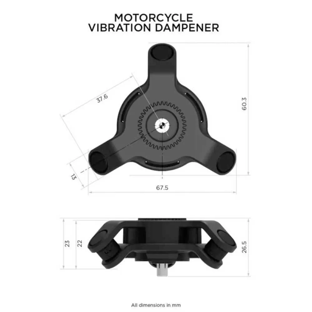 - Kompatibel med alle Quad Lock-motorcykelbeslag og Quad Lock-motorcykeltilbehør, Quad Lock-vibrationsdæmperen reducerer over 90 % af højfrekvente vibrationer produceret af motorcykler.