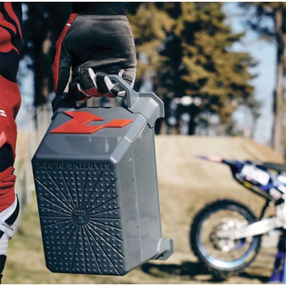 Startblokke stigerør udviklet til hjælp for unge og korte motocrosskørere ved startporten. Kan konfigureres i to forskellige versioner: 10 cm (4 tommer) højdeblokke eller 15 cm (6 tommer) højdeblokke giver mere stabilitet for bedre start