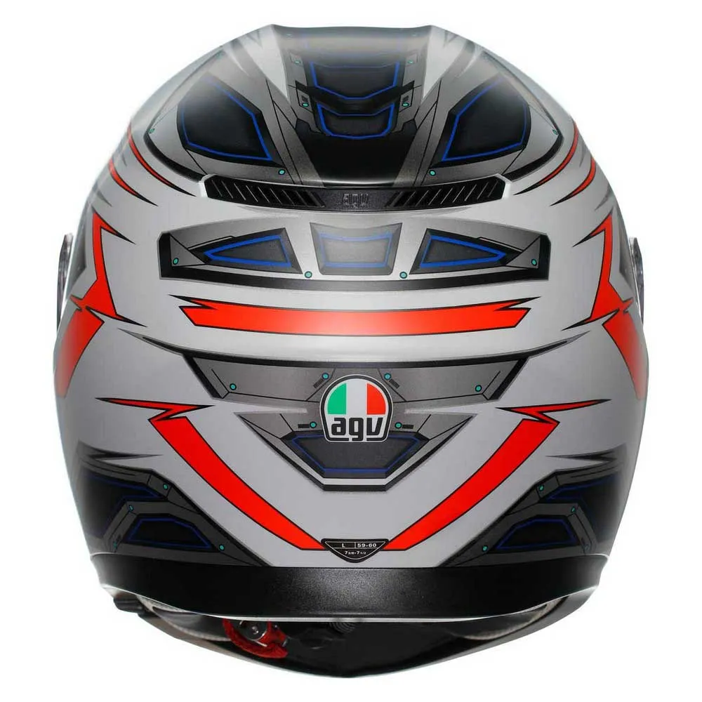 - Das AGV Extreme Safety Konstruktionsprotokoll bedeutet, dass der K3 die Anforderungen der anspruchsvollsten internationalen Normen übertrifft und somit noch sicherer ist. Die Helmschale besteht aus hochresistentem thermoplastischem Material für minimale Belastung, während die Innenschale aus mehrdichtigem EPS besteht.Das sichere Profil wurde entwickelt, um Verletzungen des Schlüsselbeins zu vermeiden. Das mikrometrische Stahlverriegelungssystem ist bequem und sicher.