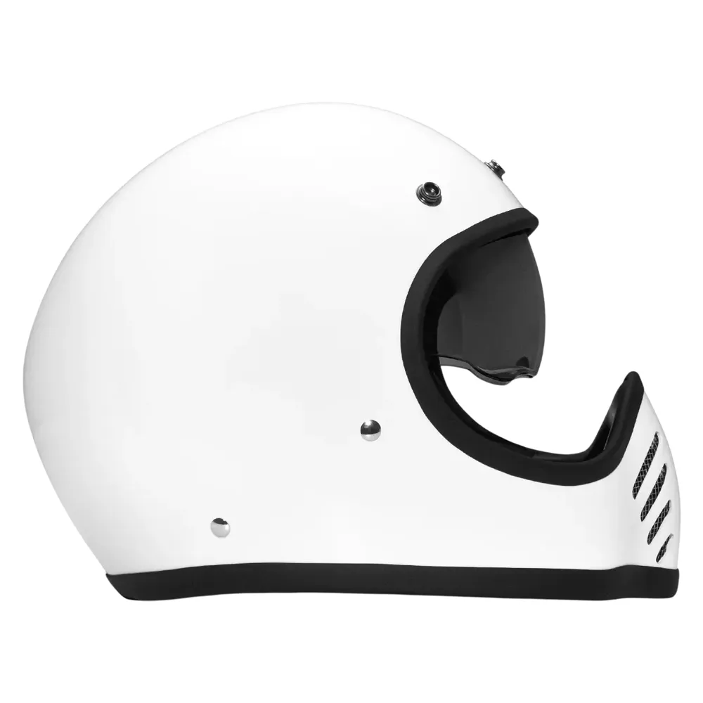 Reisen Sie zurück in die Vergangenheit, ohne auf modernen Schutz zu verzichten, mit dem DMD Seventyseven, einem Integralhelm, der den ikonischen Rennstil der 70er Jahre meisterhaft mit den höchsten Sicherheitsstandards von heute verbindet. Der Seventyseven wurde für erwachsene Fahrer entwickelt, die Wert auf Tradition und Leistung legen, und ist eine Hommage an das goldene Zeitalter des Motorradfahrens, neu interpretiert für die heutige Straße. Seine authentische Vintage-Silhouette, komplett mit einem markanten Kinnbügel und einem weiten, klaren Sichtfeld, macht ihn zum perfekten Herzstück für jeden Classic-, Custom- oder Café-Racer-Enthusiasten.