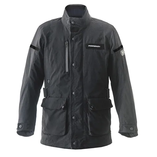 Zwei vordere untere Taschen mit verdeckten mittleren Knöpfen und eine vordere obere Tasche mit reflektierendem Besatz und Reißverschluss. Innentaschen mit festem und herausnehmbarem Innenfutter sowie Innentasche im Klappenbereich.