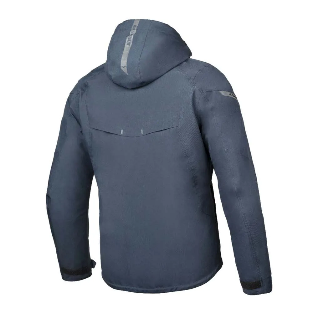 Moderner urbaner Stil: Ein schlankes Softshell-Design mit einem femininen Schnitt und einer abnehmbaren Kapuze für das Tragen abseits des Motorrads.