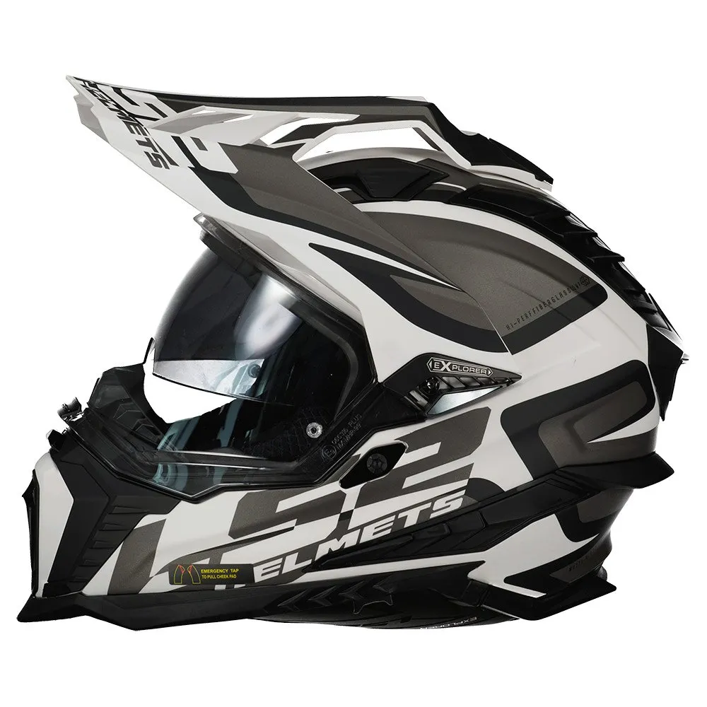 LS2 Enduro-Helm ´´MX701 Explorer Alter´´, 3 Helmschalengrößen, integrierte Sonnenblende, Wangenpolster und Innenfutter herausnehmbar und waschbar, Notfall-Wangenpolster, Ratschenverschluss, abnehmbares Visier, Vorbereitung für Helkommunikation, inkl.:
