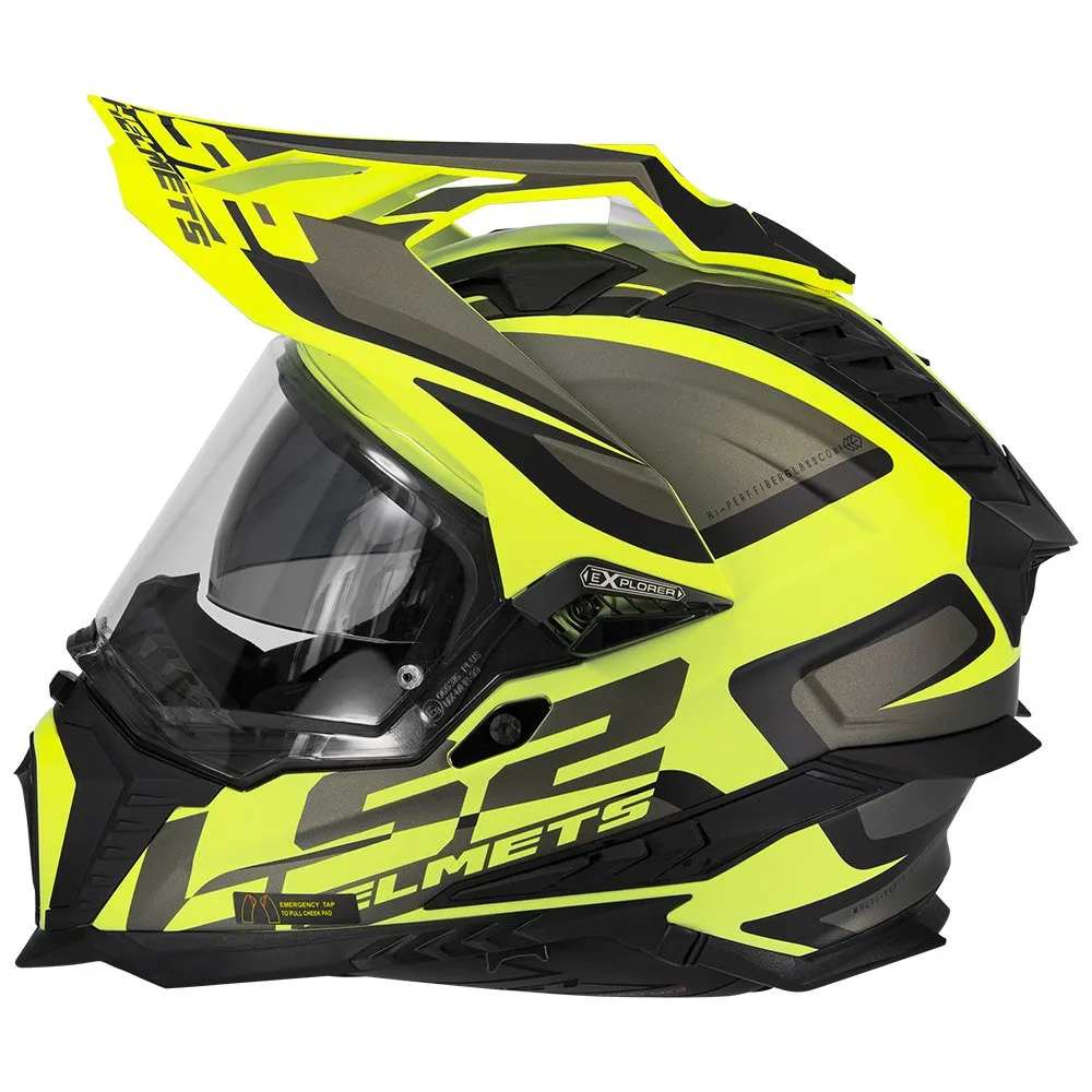 LS2 Enduro-Helm ´´MX701 Explorer Alter´´, 3 Helmschalengrößen, integrierte Sonnenblende, Wangenpolster und Innenfutter herausnehmbar und waschbar, Notfall-Wangenpolster, Ratschenverschluss, abnehmbares Visier, Vorbereitung für Helkommunikation, inkl.: