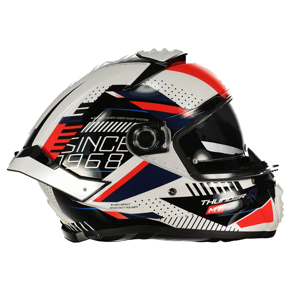 Wählen Sie den MT Helmets Thunder 4 SV Luminence Integralhelm für ein überragendes Fahrerlebnis. Investieren Sie in einen Helm, der Ihre Sicherheit, Ihren Komfort und Ihren Stil priorisiert. Erleben Sie den Unterschied eines Premium-Helms, der für den modernen Fahrer entwickelt wurde. Fahren Sie mit Vertrauen, wohl wissend, dass Sie vom Besten geschützt sind. Dieser Helm ist eine perfekte Mischung aus Leistung, Schutz und Stil und damit die ideale Wahl für jeden Fahrer, der einen erstklassigen Integralhelm sucht. Erleben Sie noch heute den Unterschied von MT Helmets.