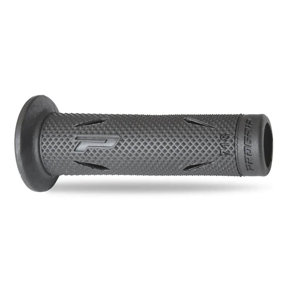 Mit einem klassischen Full-Diamond-Muster über die gesamte Oberfläche bietet der PROGRIP 718 maximale Traktion unter allen Bedingungen. Egal, ob Sie auf schlammigen Wegen unterwegs sind, im Regen fahren oder mit Schweiß an einem heißen Tag zu kämpfen haben, die griffige Oberfläche sorgt dafür, dass Ihre Hände fest an Ort und Stelle bleiben. Dieser verbesserte Grip führt zu einer präziseren Gassteuerung und einem besseren Gefühl für die Verbindung zum Vorderbau Ihres Motorrads, was Ihr Selbstvertrauen stärkt, um an Ihre Grenzen zu gehen. Das schlanke Profil des 718-Griffs wird von vielen Fahrern wegen seines direkten Gefühls und des präzisen Feedbacks vom Lenker bevorzugt.