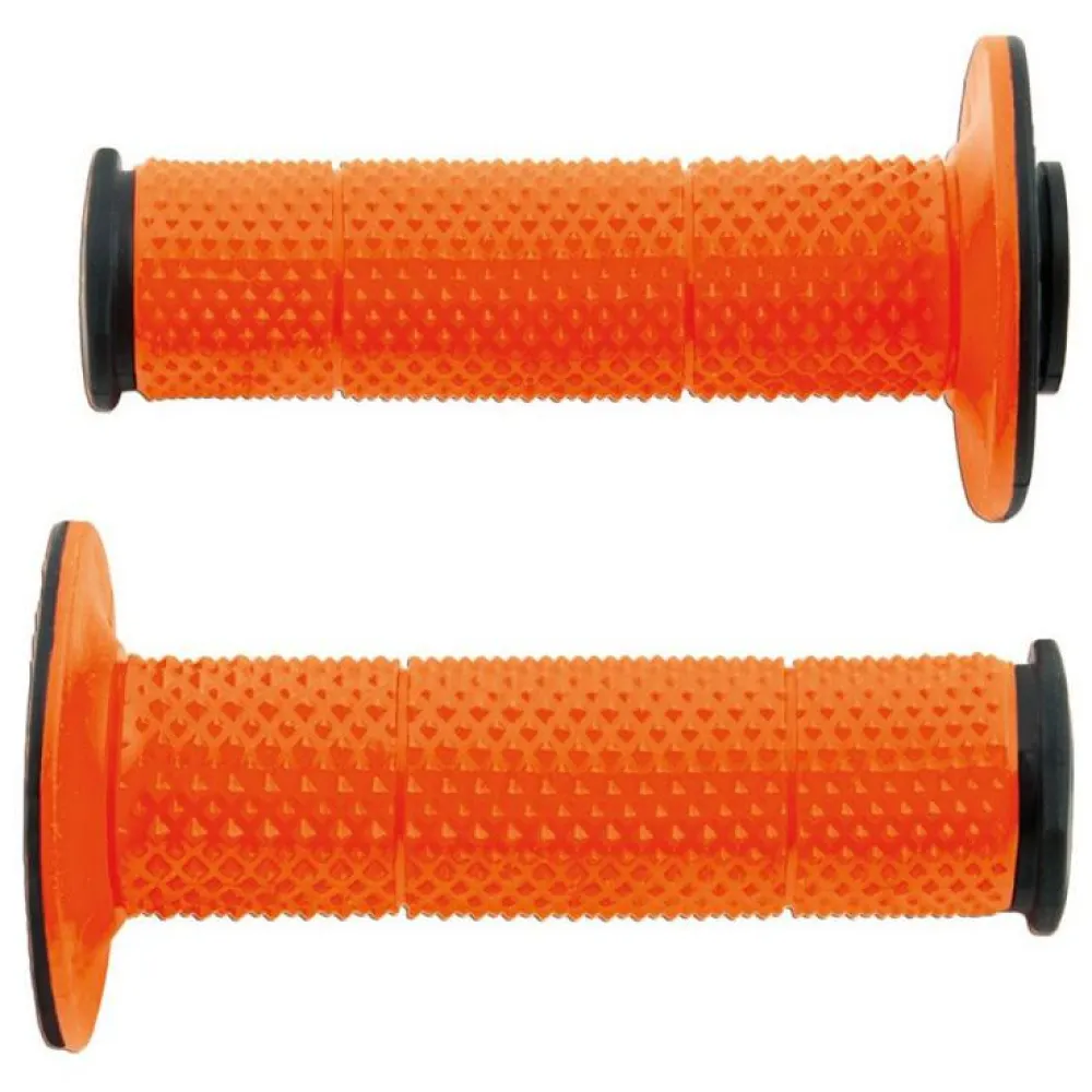 Entwickelt, um sowohl den Durchmesser als auch die Dicke auf ein Minimum zu reduzieren, erhöht dies den Griff des Fahrers am Lenker. Die innere Schicht der Handgriffe besteht aus einer steiferen Komponente, die die Befestigung erleichtert, den Widerstand erhöht und verhindert, dass sie während der Fahrt abrutschen. Das pyramidenförmige Design der Außenschicht und das sehr weiche Material garantieren eine hervorragende Absorption und Reduzierung von Vibrationen sowie ein wunderbares Greifen.