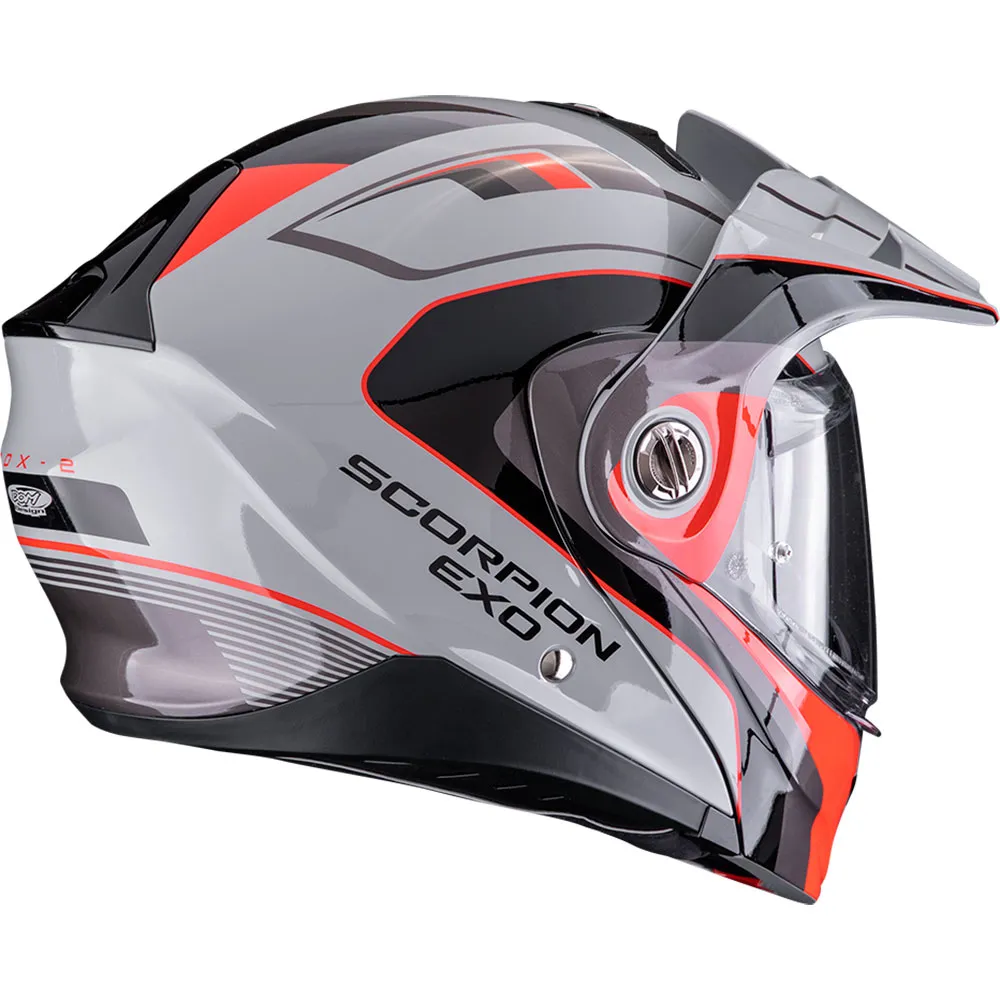 Entfessle deinen Abenteuergeist mit dem Scorpion ADX-2 Kamp, dem Meister der Vielseitigkeit in der Welt der Modularhelme. Entwickelt für Fahrer, die sich nicht auf einen einzigen Weg festlegen lassen, verwandelt sich der ADX-2 Kamp nahtlos von einem Integral-Tourenhelm in einen aggressiven Adventure-Helm und bietet sogar ein Open-Face-Gefühl für malerische Fahrten. Egal, ob du kurvenreiche Bergstraßen bezwingst, unwegsames Gelände erkundest oder durch den Großstadtdschungel pendelst, dieser Helm passt sich deiner Reise an und bietet unvergleichliche Funktionalität und Stil.