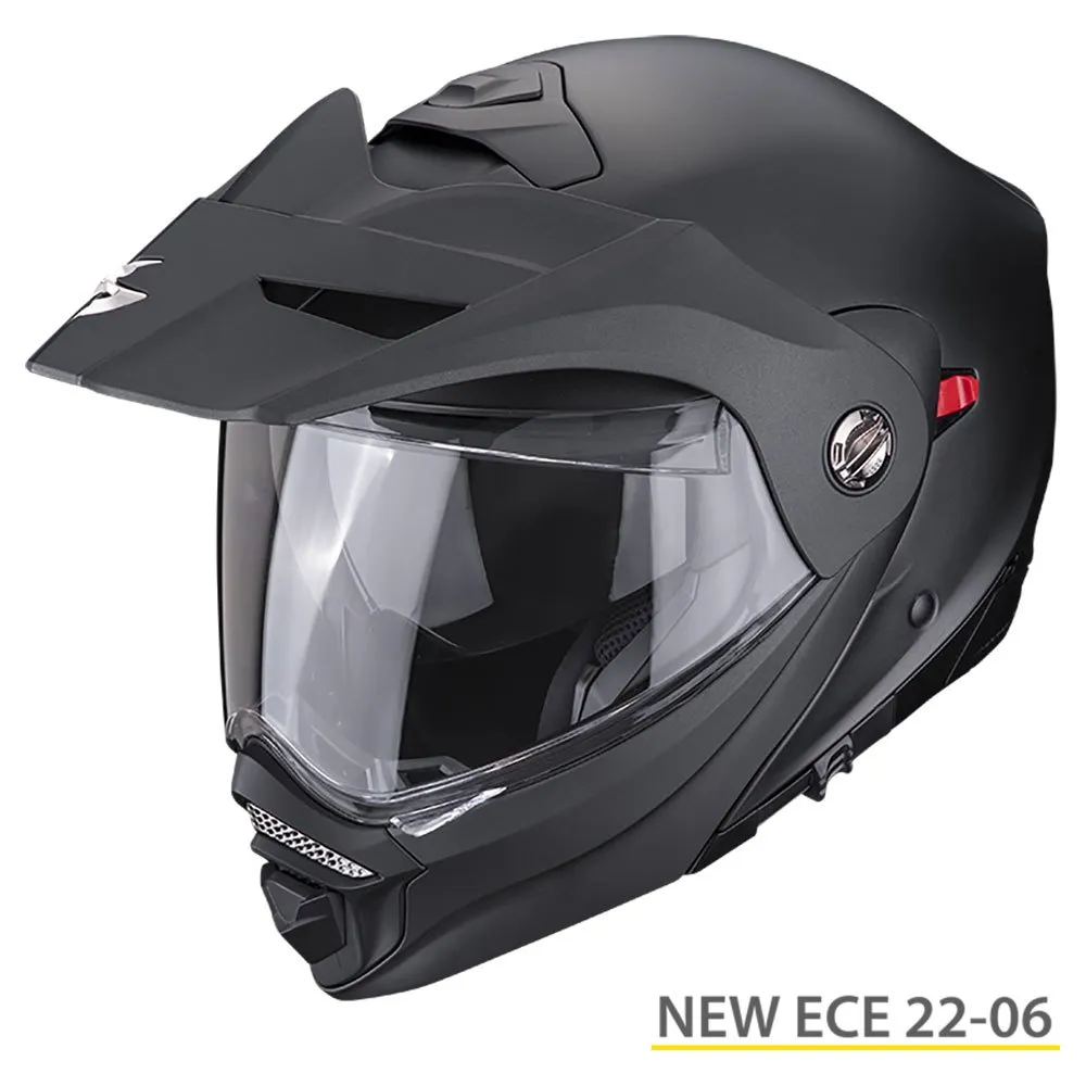 Wenn Ihre Fahrten Sie regelmäßig auf und abseits der Straße führen, ist es an der Zeit, den neuen modularen Abenteuerhelm ADX-2 von Scorpion in Betracht zu ziehen. Vielseitigkeit mit P/J-Doppelhomologation und optimalen Funktionen für Fahrer, die Touren, Abenteuer oder sogar Dirtbikes vorhaben, unabhängig von den Fahrbedingungen, der ADX-2 ist voll und ganz auf alles ausgerichtet, was Sie sich wünschen. Der modulare Helm für hyperflexible Abenteuer/Dualsport führt zu alle Vorteile mit bequemem Hochklappen des Kinnbügels für eine kurze Pause oder Austausch des Gesichtsschutzes gegen eine Brille für ein ernsthaftes Dirtbike-Erlebnis und auch einfaches Entfernen des externen Schirmvisiers für aerodynamische Tourenzwecke. Kreuzt alle Kästchen an! Der ADX-2 ist der Helm, der über eine Vielzahl von Funktionen verfügt, darunter eine interne herunterklappbare Speedview®-Sonnenblende und ein KwikWick® C-Innenfutter, die maximalen Komfort für alle Arten von Abenteuern bieten. Das Innenfutter ist vollständig mit So¸-Gewebe gefüttert, das übermäßiges Schwitzen verhindert, insbesondere bei Fahrten über lange Strecken oder an heißen Tagen. Außerdem wird die innovative Bluetooth-Gegensprechanlage EXO-COM® (separat erhältlich) des wunderschön gestalteten Scorpion Ihre Suche nach Abenteuern inspirieren.
