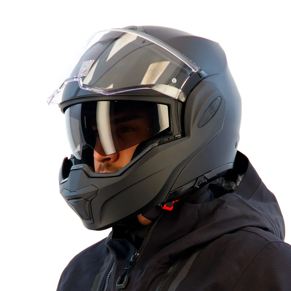 EXO-Tech EVO möchte nicht nur ein weiterer modularer Helm im Flip-Back-Stil sein, sondern mit seinem perfekten Fullface-Design, der weiten Sicht mit Antibeschlag-bereitem Visier, der Schale mit geringem Volumen und dem einfach zu bedienenden Kinnstangenmechanismus ein Game Changer sein. und durch eine Zugfeder angebrachte One-Touch-Entlüftung an der Oberseite. Dieser modulare Helm bietet ein gutes Preis-Leistungs-Verhältnis, um verschiedene Marktanforderungen zu erfüllen. Sie werden die Unterschiede sehen, wenn Sie es betrachten, Sie werden die Unterschiede spüren, wenn Sie es tragen, und Sie werden die Unterschiede erleben, wenn Sie damit fahren.