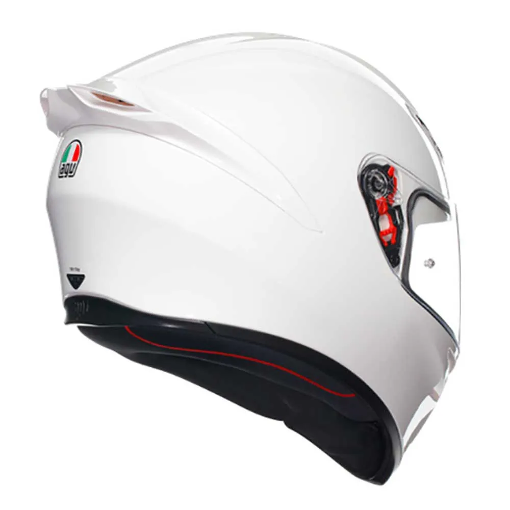 Experience the thrill of the track on every ride with the AGV K1 S. Born from AGV´s racing experience, its aerodynamic shell and integrated spoiler slice through the wind, ensuring maximum performance and stability at high speeds. The panoramic, anti-scratch visor provides an incredible 190° horizontal view for total environmental control. Inside, the soft, removable Dry-Comfort interiors deliver uncompromising comfort, while the collarbone-safe profile and Double D retention system prioritize your safety. This is everyday perfection, inspired by champions