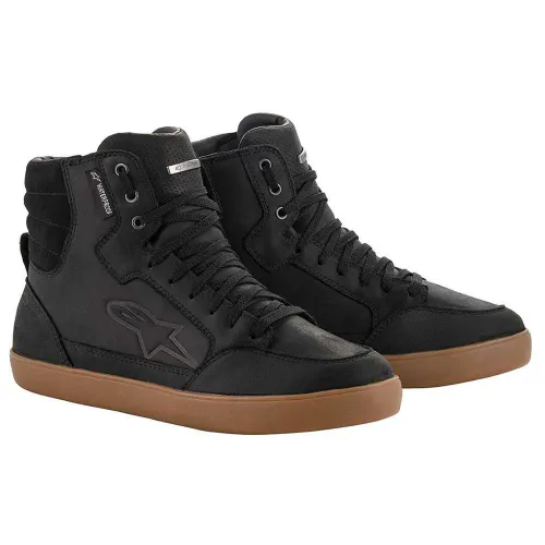 Street style meets rider protection in the Alpinestars J-6 Waterproof Shoe. Crafted from premium full-grain leather and suede, this contemporary boot hides serious safety features. A 100% waterproof membrane ensures your feet stay dry in any weather, while an ergonomic, MX-derived ankle guard and reinforced heel and toe offer strategic protection. Lightweight and highly comfortable with a durable, vulcanized rubber sole for excellent stability and support, the J-6 is the perfect blend of casual looks and on-bike performance. CE certified