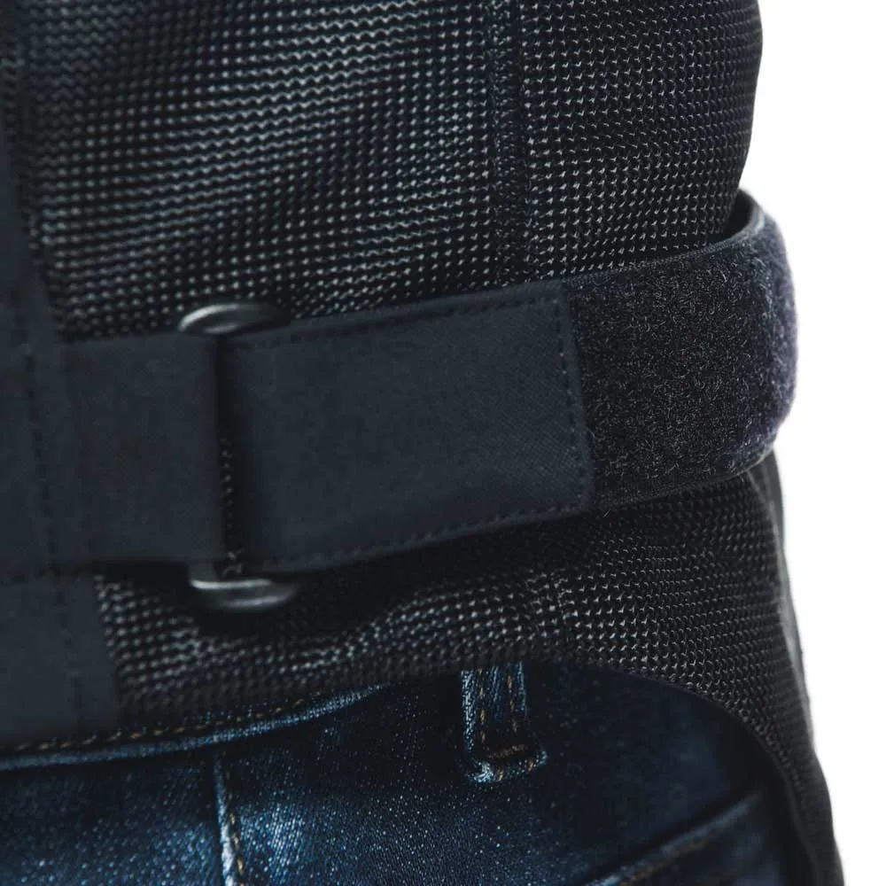 The Dainese Air Fast Tex motorcycle jacket guarantees proper ergonomics due to its stretch fabric inserts on the back, the adjustable Velcro waist, and jacket/pants connection system.