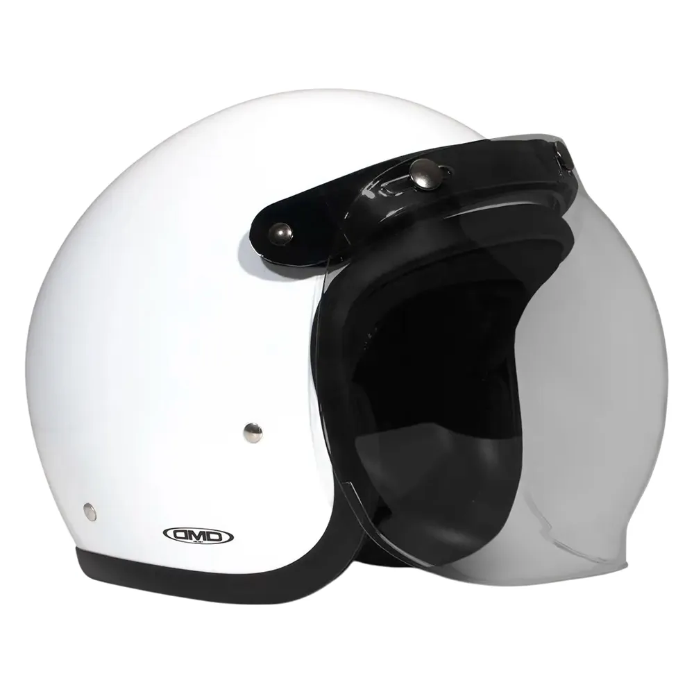 Merge timeless vintage style with modern practicality using the DMD Flip-Up Bubble Screen. This essential upgrade for your open-face helmet features a convenient flip-up mechanism, letting you raise the screen with a simple motion for quick access and fresh air. The iconic bubble design not only delivers a classic retro look but also provides a wide, distortion-free panoramic view that comfortably accommodates eyeglasses. Its universal three-snap system ensures a secure fit on most helmets, while the scratch-resistant finish and multiple tint options offer durability and personalized style for any ride