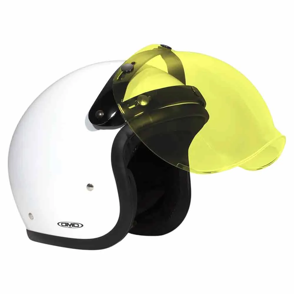 Merge timeless vintage style with modern practicality using the DMD Flip-Up Bubble Screen. This essential upgrade for your open-face helmet features a convenient flip-up mechanism, letting you raise the screen with a simple motion for quick access and fresh air. The iconic bubble design not only delivers a classic retro look but also provides a wide, distortion-free panoramic view that comfortably accommodates eyeglasses. Its universal three-snap system ensures a secure fit on most helmets, while the scratch-resistant finish and multiple tint options offer durability and personalized style for any ride