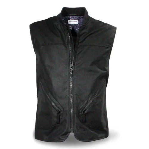 the waxed cotton vest is an authentic vintage look garment, essential for any motorcycle enthusiast. this short model is full of details like cross pockets for an easy access to who is always riding the motorbike.