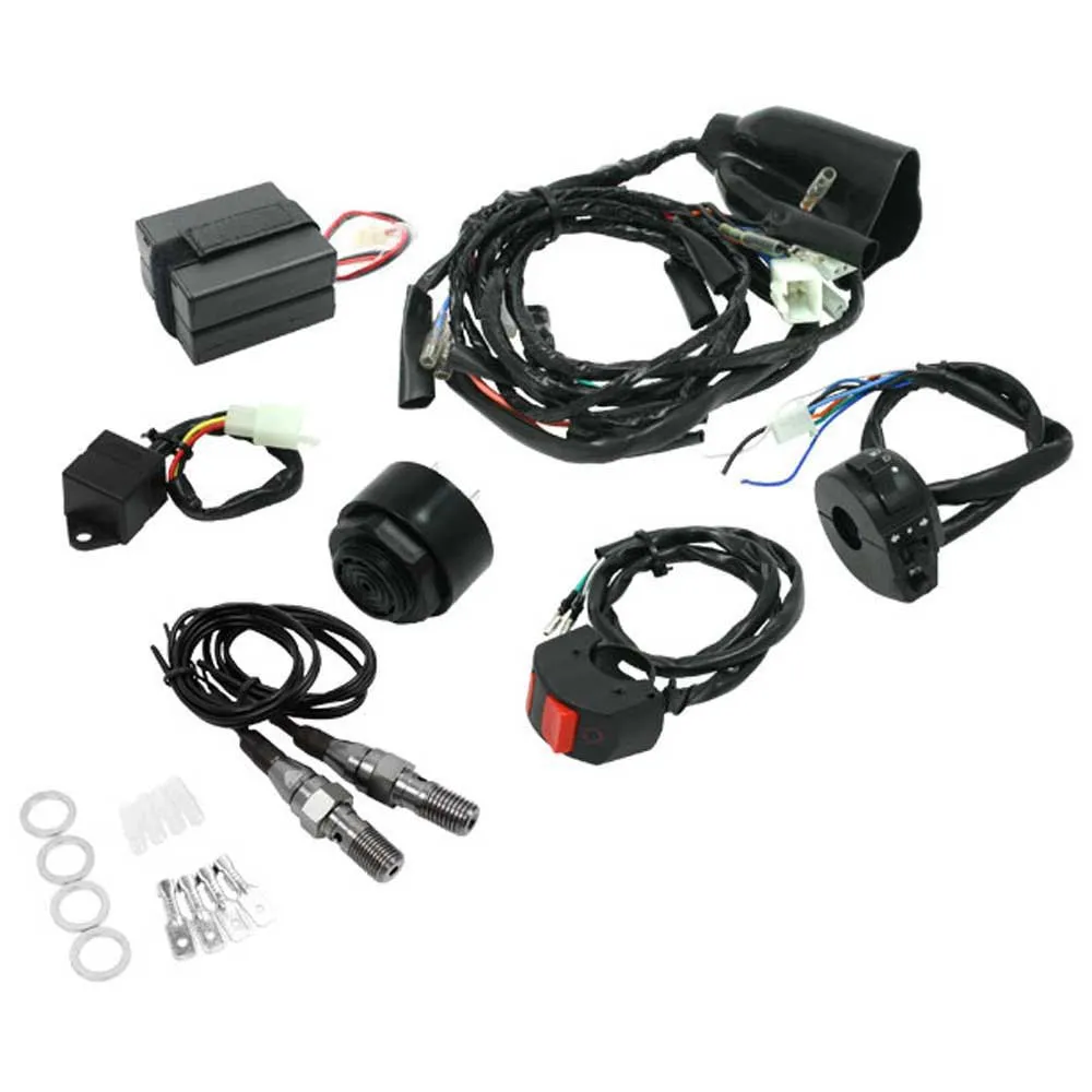 This handlebar-mounted switch boasts a durable, weather-resistant construction, built to withstand the rigors of demanding riding conditions. Its compact design minimizes bulk on your handlebars, allowing for greater freedom of movement and improved ergonomics. The intuitive button layout ensures quick and easy operation, even while wearing gloves. Start and stop your engine with a simple press, enhancing your control and reaction time in critical situations. The integrated design eliminates the need for separate ignition and kill switches, streamlining your handlebar setup and improving overall aesthetics.