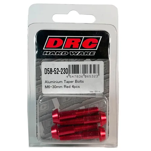 Don´t compromise on the quality of your fasteners. The DRC M6x30 Conical Screw Kit provides a reliable and cost-effective solution for all your maintenance needs. With its durable construction, precise design, and convenient packaging, this kit is an essential addition to any toolbox. Ensure the longevity and performance of your equipment with this high-quality fastening solution. Order your DRC M6x30 Conical Screw Kit today and experience the difference that quality makes. Keep your projects secure and your maintenance tasks efficient with this essential tool. This set of four ensures you have the right fasteners on hand when you need them, eliminating downtime and frustration. Choose DRC for quality, reliability, and performance.