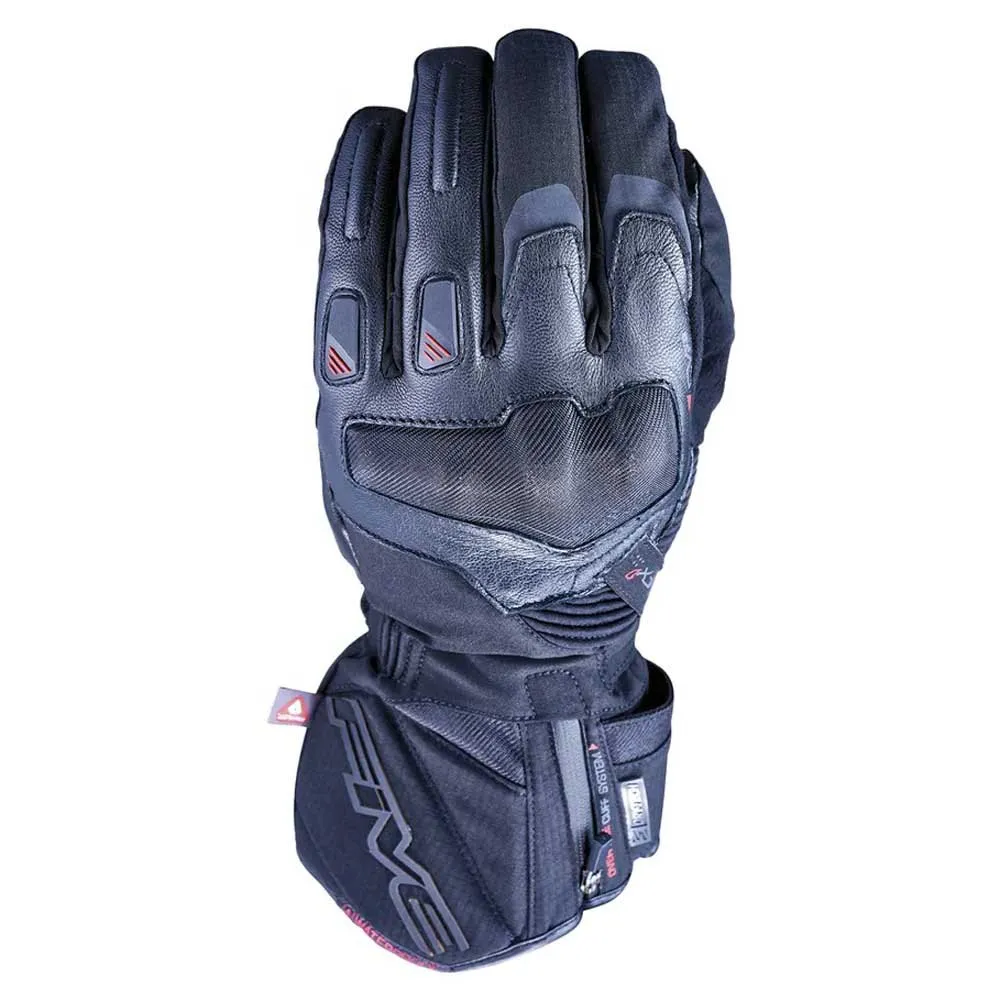Usefully combining the benefits of leather with the technical advantages offered by some synthetic materials was our goal in designing the WFX 1 EVO WP, a modern, warm, comfortable, protective, and supple glove to face the harshness of winter. Its entire palm is made from goat leather, renowned for its extreme suppleness. The same goes for most of its topside construction, to which we’ve added water-repellent, stretch technical fabrics. The main asset of this WFX1 EVO WP is clearly its Primaloft® thermal insulation, a sort of water-resistant, synthetic down fill that captures the natural heat of your hands to create a thermal barrier against outside temperatures. The 5_DRYTECH™ membrane ensures the breathability and weatherproofing you need when it’s raining. It’s glued to the palm, ensuring that it stays put and offering better grip on the handlebars. An internal lining on the top of the hand in synthetic fur adds a feeling of soft comfort that’s comforting when the cold gets to you. Protection is provided by a one-piece ERGO PROTECH® shell concealed under the fabric on the metacarpals, and by the very latest in soft palm shells, along with reinforcements on the outer fingers. Comfort gussets around the wrist contribute to perfect freedom of movement. Particular attention has been paid to the cuff and the closure system. The Over Size Cuff System allows you to adjust the length of the cuff using a weatherproof zipper, so you can more easily wear it over your jacket’s sleeve. A two-point adjustment-strap anchor ensures perfect wrist hold. The WFX1 EVO WP features elements that make your everyday ride more enjoyable, such as the Touch Screen™ system for handling device screens, or the Clear Vision Pad™ on the left hand, which allows you to wipe off your helmet visor while you ride. WFX1 EVO WP: the glove designed for long rides in the rain or cold, while your hands stay warm and dry.