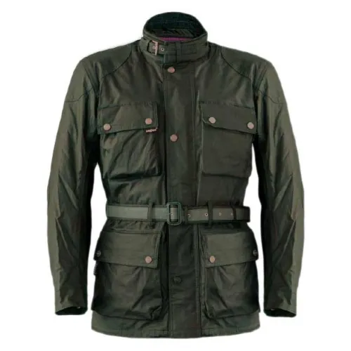 The most popular jacket from Garibaldi. Outshell in Wax Cotton style from Samtex®. 1621-1 CE Powertector® protections on shoulders and elbows. Foam back protector. Reissa® breathable, windproof and waterproof membrane applied in a Z-liner construction, a separate layer placed between the inner and outer shells of the garment. Detachable Tartan flannel thermal lining for a maximum comfort. No sweat inner holed lining. Four sealed frontal pockets and two on sides. Double frontal flap with double lock on zip and velcro. Inner pocket available in fixed and detachable lining. Inner hidden pocket. Neck lined in velvet. Adjustable neck and wrist. Lower strip adjustment. Dark reflective reversible belt. Women´s version is also available.