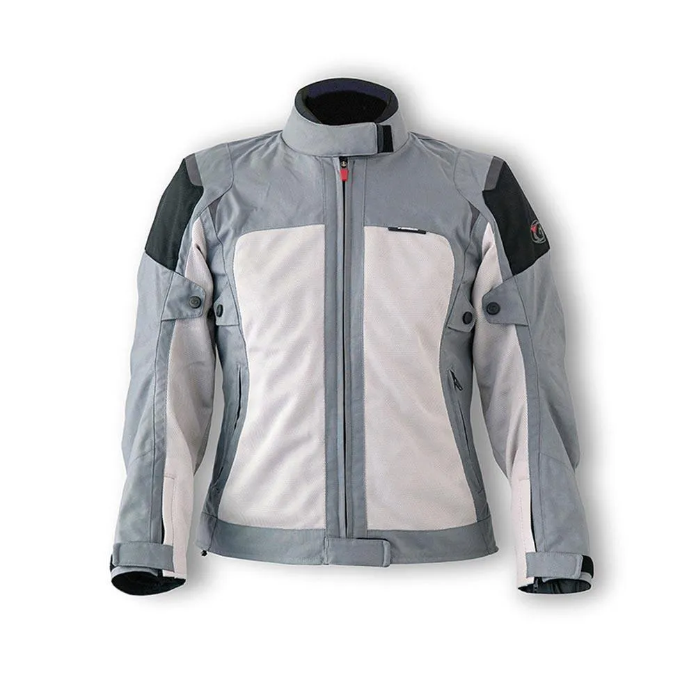 100% Airguard polyamide and technical Air-Mesh fabric. 1621-1 CE Powertector protection on shoulders and elbows. Foam back protector. No sweat inner holed lining. Two frontal outer pockets and two inner pockets. Inner pocket for Ipod-Mp3. Adjustment on neck, waist, sleeves and wrists. Dark reflective 3M inserts on shoulders and back. Zip to join trousers. It includes a waterproof and breathable Reissa rain coat.