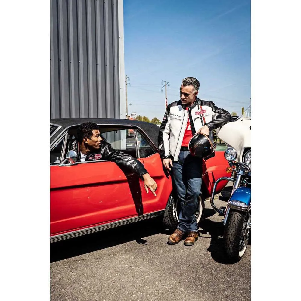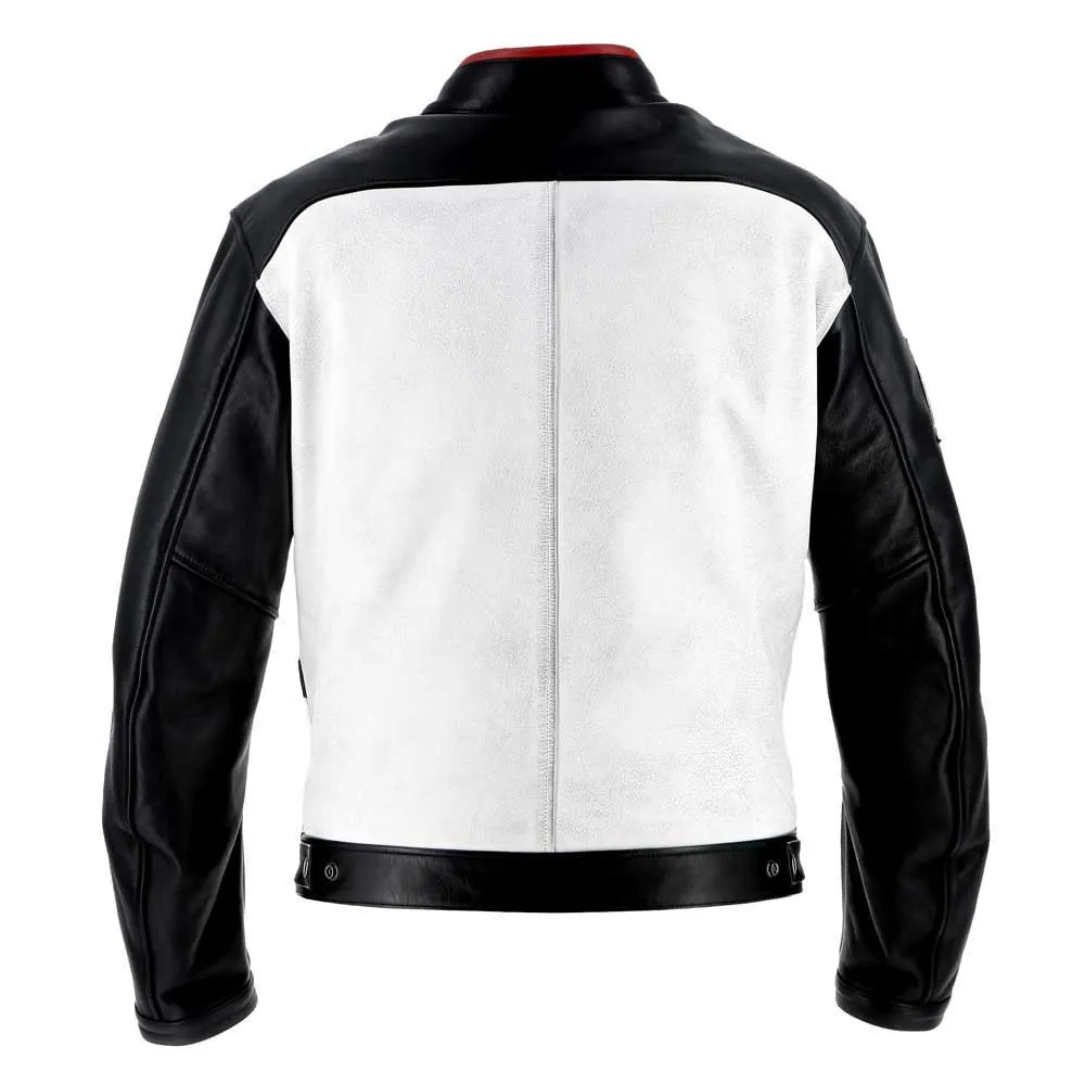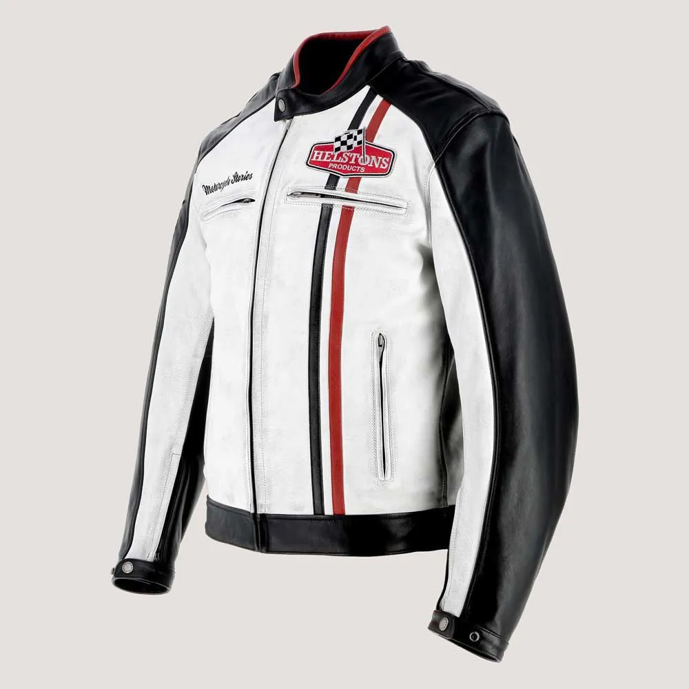 The HELSTONS Jay leather jacket in Black/White is a stylish and versatile jacket for men. Made from high-quality leather, this jacket is both durable and comfortable to wear. The black and white color combination adds a modern and edgy touch to the classic motorcycle jacket design. The jacket features a sleek and slim fit, with detailed stitching and zipper accents for added style. Perfect for wearing on and off the motorbike, this jacket is a timeless and essential piece for any man's wardrobe.