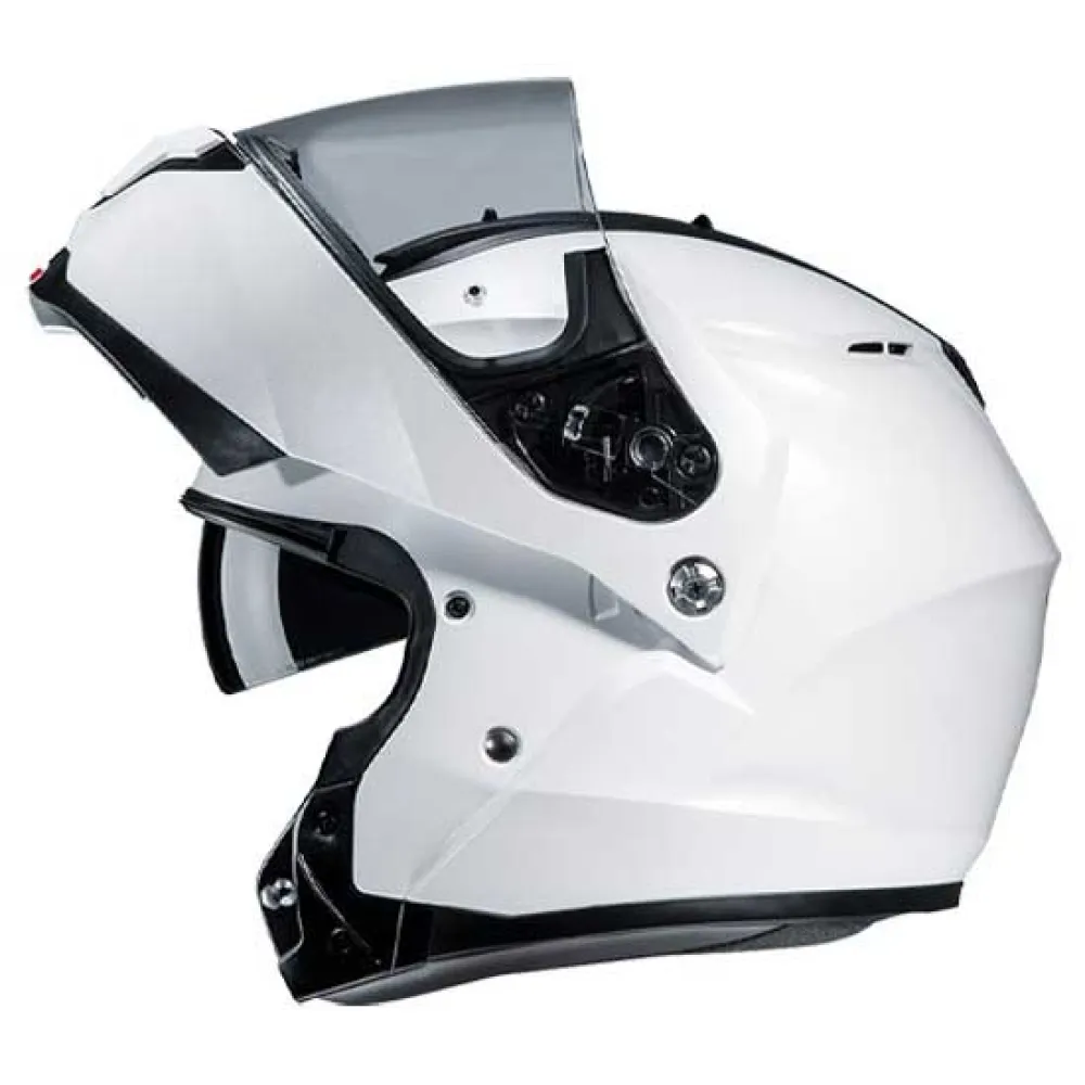 Experience versatile performance with the HJC C91N modular helmet. Seamlessly switch from a secure full-face to an open-face design to customize your ride. Stay cool and comfortable with adjustable ventilation, while the aerodynamic shell ensures a quieter journey. Enjoy crystal-clear views through the wide, anti-scratch face shield, and instantly block sun glare with the integrated drop-down sun shield. The lightweight polycarbonate shell, plush moisture-wicking interior, and micrometric buckle provide a secure, comfortable fit for any adventure