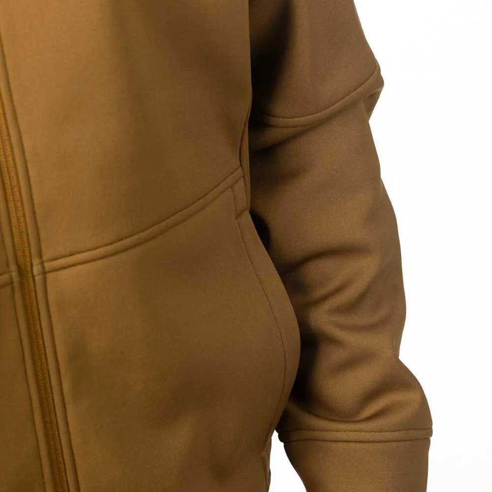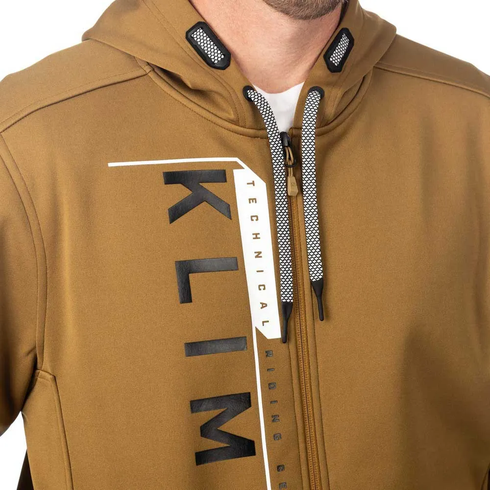 The Barracks Hoodie is a polyester-bonded fleece full-zip hoodie engineered for adventure with a water-repellent finish to ensure quick-drying performance and breathable warmth. The bonded brushed fleece backer adds an extra layer of comfort and warmth, while natural stretch delivers unrestricted freedom of movement. The adjustable drawcord 3-panel hood provides a customized fit and protection from wind, wet and cold conditions. Offset shoulder seams enhance comfort and minimize chafing, making it ideal for layering with zippered secure hand pockets to keep essentials secure and a KLIM chest graphic.